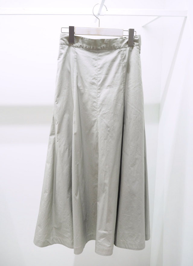 腰回りはすっきり、裾にはしっかりボリュームを持たせ、マキシ丈でももたつかずに着こなせるスカート。コットン素材で気取らず着られるので、いろんなコーデに重宝するはず。