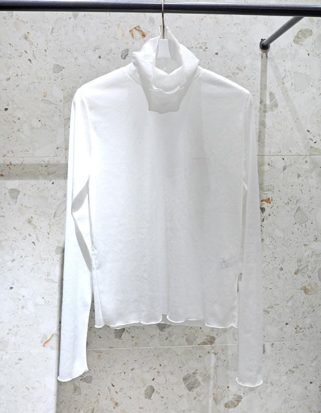 シアーな素材がトレンド感たっぷりのタートルプルオーバー。インナーとして使えば、少し長めのスリーブが袖口からチラリと見えておしゃれです。ストレッチのきいたジャージー素材で、着心地にも大満足。
