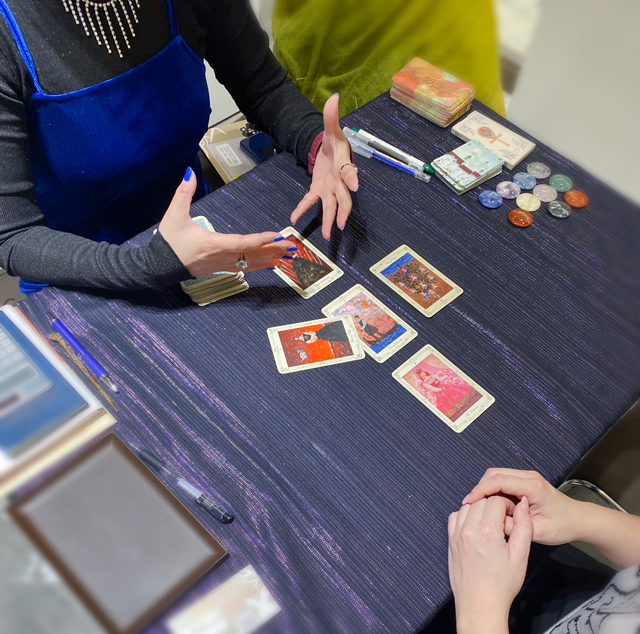最後は新たな一歩を踏み出すヒントを見つけるため、「占いの館 朱門」へ。手相やタロット、西洋占星術、九星気学、四柱推命など、多彩な占術から選べるのが魅力!相談内容に合った方法で鑑定してもらえます。