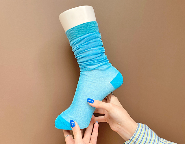 チュールソックスとはまた違う上品な透け感と、ギラギラしすぎないさりげないラメ感が、足元を大人かわいい雰囲気にしてくれます。パンプスや華奢なデザインのサンダルなど、女性らしいスタイルにおすすめ。長めのスカートと合わせるとタイツ風になるので、ちょっとしたパーティーにもぴったりなアイテムです。