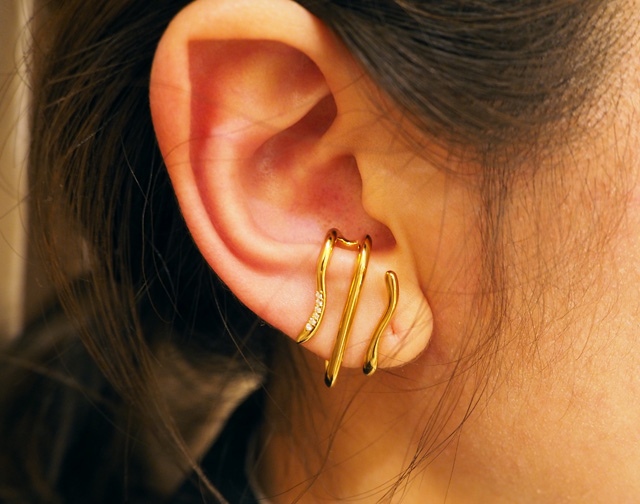 こちらは波のようなデザインのライナーカフ。キュービックジルコニアをさりげなくあしらい、女らしさをきらりと光らせます。