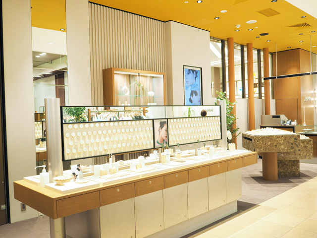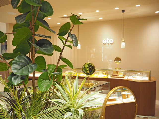 続いては、3Fから2Fへと移転リニューアルオープンした「エテ」へ。“Always, my favorite one.”をテーマに、シンプルな美しさと遊び心のあるジュエリーを展開するブランドです。店舗スペースが広くなったことでアイテム数が増え、オーダーアイテムのカウンターも新設。大切な人との絆や自分への誓いを形にするETERNALING®や、カスタマイズできるネックレスなどが揃い、ファッションからブライダル、フォーマルまで幅広く揃います。