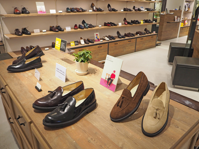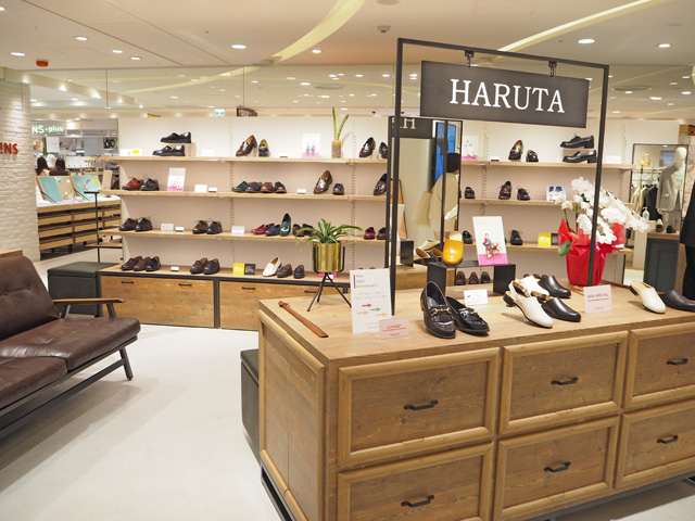 続いてはローファーで有名なシューズブランド「ハルタ」へ。関西での直営店は天王寺ミオを含めて2店舗だけとあって、同ブランドのさまざまなラインナップが見比べられる貴重なショップです。