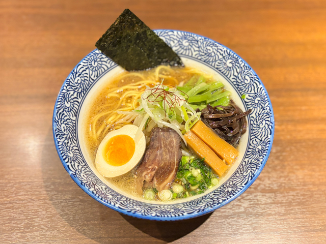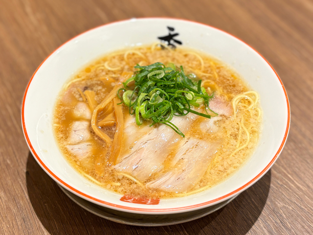 京都壬生発の人気店「香来」のラーメンが食べられるのは、大阪ではここだけ!豚骨と鶏ガラのWスープに背脂を軽くプラスした基本の1杯は、熟成細麺と絡み合う旨味たっぷりのスープが絶妙。コクがありながらも意外とあっさりと楽しめます。