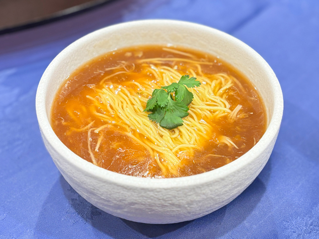 創業60年を超える老舗「天王寺百楽」は、法事やお祝いの席にも訪れたくなるお店。高級食材であるフカヒレの旨味が溶け込んだ汁そばのスープは絶品です。醤油ベースの鶏ガラスープにオイスターソースのコクが加わり、上品なとろみが体を温めてくれます♪