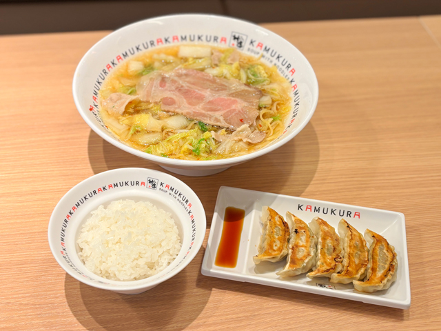 満腹になりたい方におすすめなのが、お好みのラーメンに餃子とライスがついたお得なセット。パリッと焼き上げた焼き餃子の餡は肉汁たっぷりで、ラーメンと相まってご飯をかきこみたくなるおいしさです。