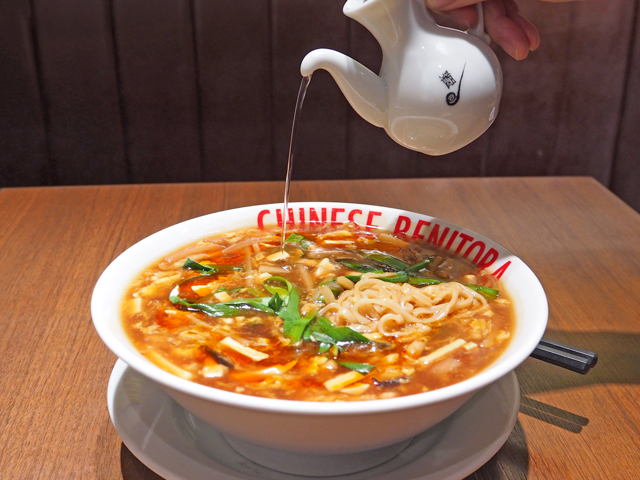中華の定番料理や家常菜(中国の家庭料理)をいただける「紅虎軒」。看板メニューのサンラータン麺は、つるつるした中太ストレート麺に、中華スープにピリッとラー油を利かせたスープがよくからみます。豆腐、キクラゲ、卵など具材とのハーモニーも絶妙!