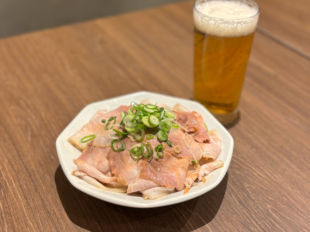 軽く飲みたい気分にぴったりのメニューがあるのも「香来」のうれしいところ。お好きなアルコールまたはドリンクに、おつまみはギョーザ6個、からあげ3個、つきだしチャーシューの3種類から1つ選べます。(写真はつきだしチャーシュー)