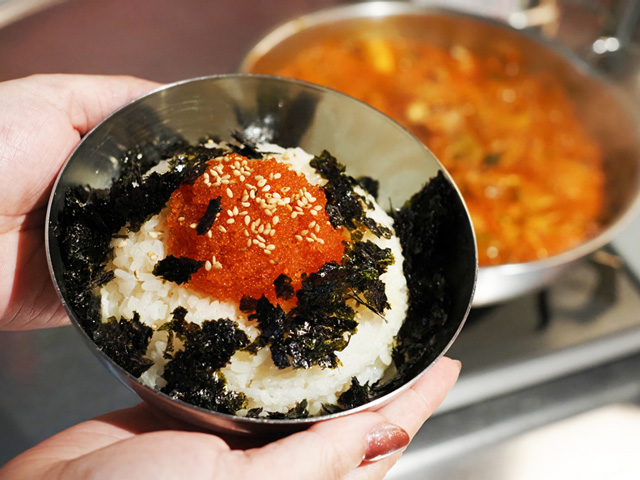 ぐつぐつ煮込んでいくと、それぞれの食材から出る旨味が混ざり合って深い味わいに♪ランチメニューも展開中で、白ごはんとおかず3品付き(2,100円)です。ランチで「ナッコプセ」が食べられるのは珍しいですよ!