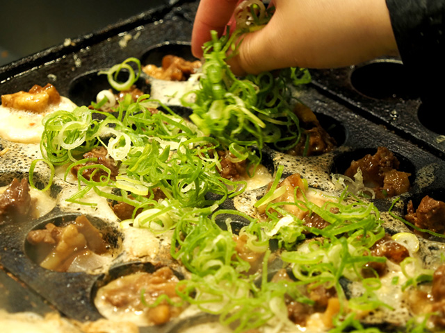 定番人気のメニューは「ラヂオ焼き」で、タコの代わりに牛すじ、コンニャク、ネギが入っています。「会津屋」の創業当時に生まれたメニューで、たこ焼きの原型となった歴史ある一品!