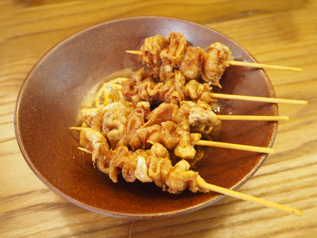 ピリ辛でお酒がすすむ串物