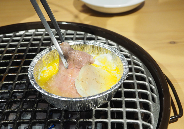 人気の「うにく」は、薄切りにした国産牛を裏面だけあぶり、生ウニをのせた贅沢なメニュー。「濃厚な味わいでやみつき間違いなしです!」とスタッフさんお墨付きの一品です。