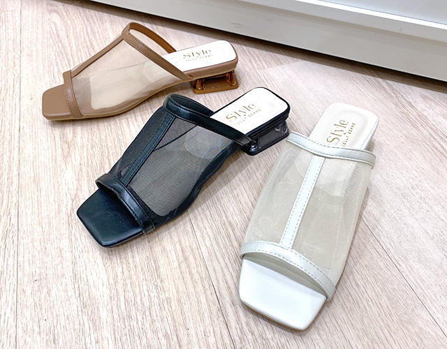 人気継続中のシアー感のあるチュール素材にクリアヒールを組み合わせたミュールサンダルはセンターと縁取りのパイピングラインがアクセント。シンプルなスタイリングにプラスするだけで、抜け感のあるこなれた雰囲気を演出します。涼し気な素材感でシーズンムードを盛り上げる1足です。サッと履ける着脱が簡単なミュールは、持っていると便利なアイテムです♪