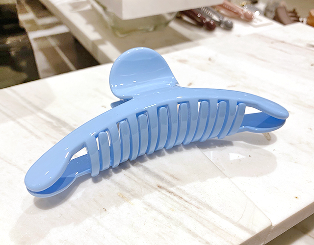 ポップなカラーが可愛いヘアクリップ。スカイブルーのカラーが爽やかでこの時期ぴったりなアイテム。大きめだからしっかり挟めるところも嬉しいポイントです。