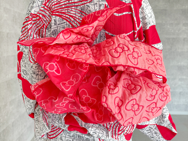 シワを伸ばすなどして整え、帯を結べば完成です!