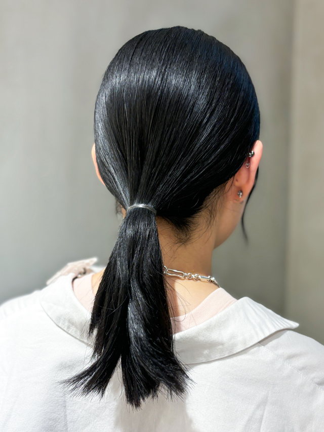 A.「まとめた部分から少し髪が出てきてしまったときは、簡単なヘアワックスで押さえつつ、アメピンでぎゅっと中に入れ込むと、再度きれいにまとまります。」(アネモネ スタッフさん)