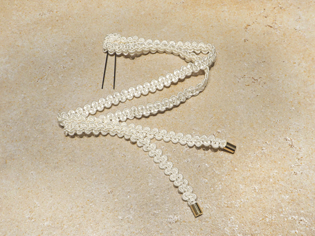 手先で作っておいた⑧のリボンを、⑨のタレ先の上部にくぐらせて形を整えます。