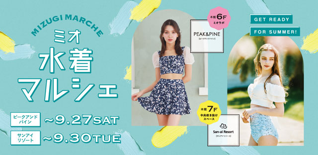 天王寺・阿倍野エリアで毎年人気の天王寺ミオ水着マルシェが今年も開催♪期間は6月20日(金)〜8月31日(日)。