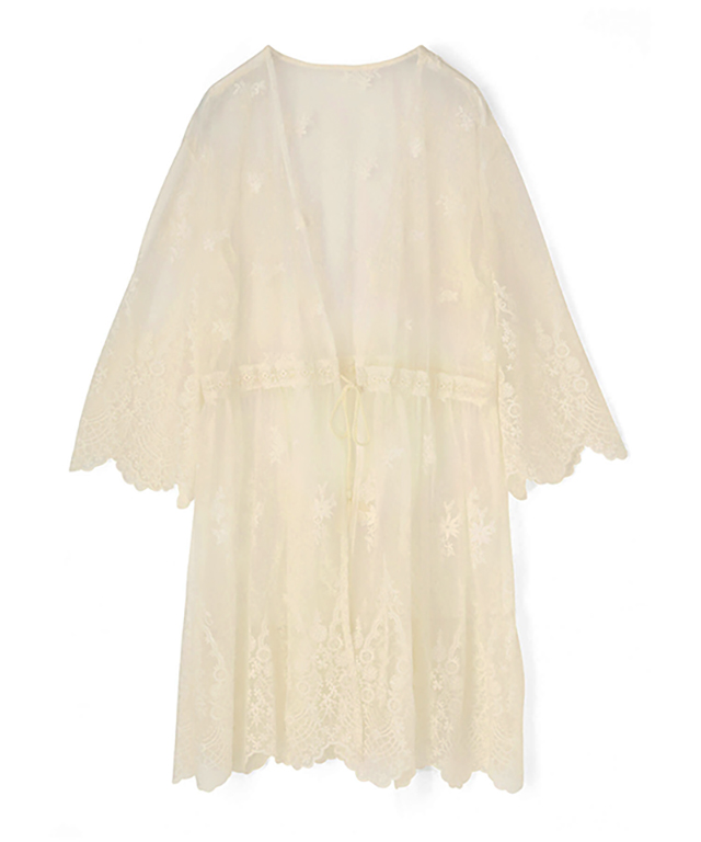 水に濡れても大丈夫でさらっとした肌触りの透け感のある繊細なレースが夏のリゾート感を演出。水着とのコーデを格上げしてくれる、1枚は持っておきたい羽織です。ヒップが隠れる丈感でバランスが取りやすく、アンダーバストの切り替えがさりげなくスタイルアップを演出してくれますよ。