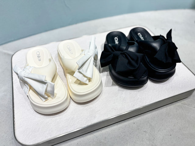 足元はぜひこちらの厚底サンダルで!ふっくらとしたシルエットは可愛いだけでなくクッション性があり、足を優しく受け止めてくれます。BIGなリボンは取り外しができ、アレンジしやすいのも魅力。