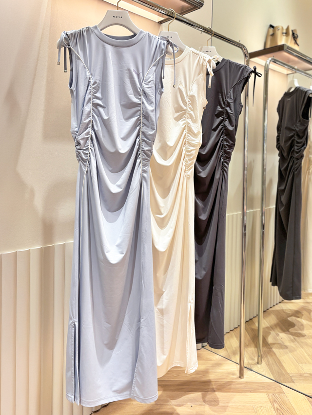 泳がなくても水辺でのレジャーが多い夏には、さらりと着られるドレスやワンピースもおすすめ。PUMAとのコラボワンピースは織目が美しくハリ感があり、サイドのメッシュ素材で清涼感も◎。
