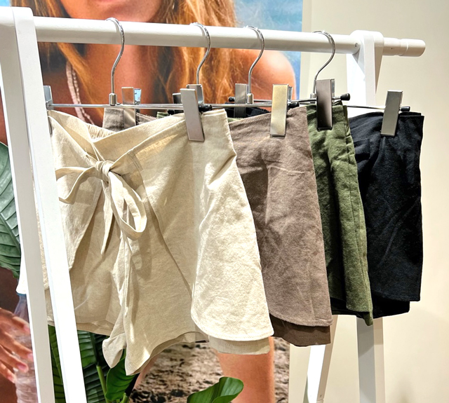 「サンアイリゾート」にはコーデアイテムもたくさん!ハイウエストのビーチデニムは裾のカーブがボディラインをすっきり見せるこだわりデザイン。薄めの素材で乾きやすく、ポケット裏に水が抜けやすいメッシュを使用するなど快適な着心地にも配慮しています。