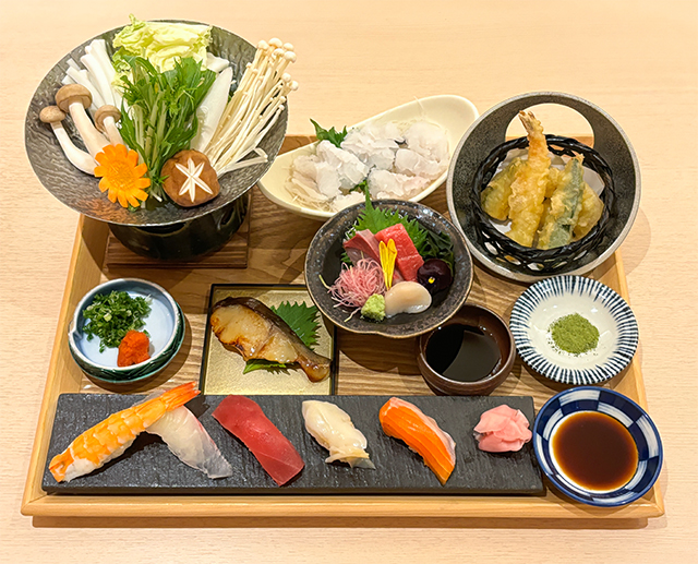 職人が握る本格派のお寿司と京料理が楽しめる「京の彩り寿司 京月」では、夏の京料理には欠かせない魚、ハモを使った期間限定の「ハモしゃぶ御膳」が登場。