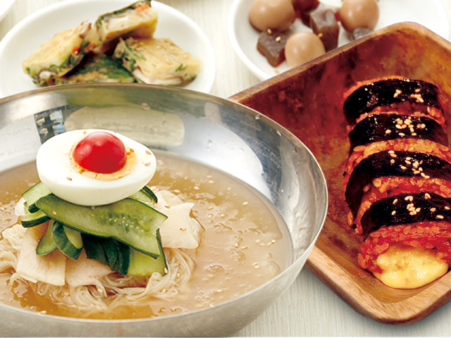 「韓国料理 ビビム」には夏に食べたくなる韓国料理が勢揃い。毎年人気の期間限定メニュー「牛バラキムチ冷麺」は、冷麺と牛肉のスタミナ満点コンビです。韓国流に肉で麺を包んで食べるのがおすすめ!
