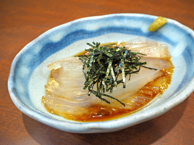 気軽に入れる和スイーツのお店「甘党まえだ」は料理も充実!夏限定で人気の「ところ天」はお酢味と黒蜜味から選べて、デザートにもランチの後のお口直しにもぴったりです。お酢味は刻みのりとわさび、黒蜜味は白玉とチェリーがアクセントになっています。