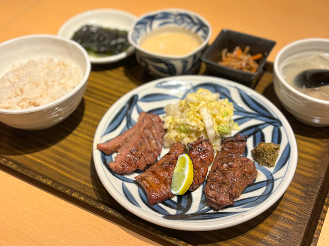 「牛たんと和牛焼き 青葉苑」では牛タンはもちろん、黒毛和牛焼きなど多彩なメニューが楽しめます。夏限定の「夏の味比べ御膳」は、定番の塩味の牛タンとさっぱりしたレモン風味の牛タンを両方堪能できる贅沢な一品。相性抜群の麦飯ととろろも付いていて、牛タンが好きな人にはたまらない御膳です。