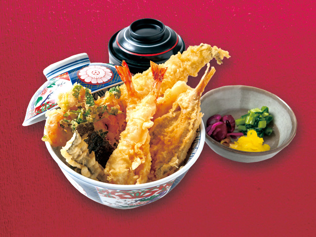穴子の一本揚げと芝海老のかき揚げを贅沢に乗せた江戸前天丼。東京生まれの「銀座 ハゲ天」が自信をもって作り上げた、7品の天ぷらが乗った豪華メニューです。11時〜16時までのランチ限定のためお見逃しなく。お店では季節のおいしさを大切に、旬の食材を活かした天ぷらをご提供。卵をふんだんに使った薄めの衣をつけ、特製ごま油でカラリと揚げています。目の前で次々と揚がる天ぷらに食欲がそそられること間違いなしです。