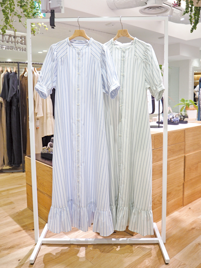 こちらのワンピースも夏のおでかけのワクワク感を表現してくれる1枚。夏らしく爽やかな配色のストライプと、裾のティアードデザインが魅力です。暑くておしゃれをしづらい夏ですが、このワンピなら1枚だけで楽に可愛く決まります。