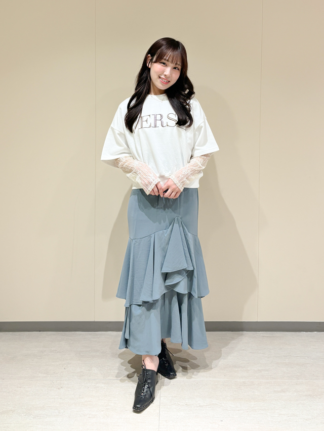 もともとキュート、ラブリー、ガーリーといったキーワードがとってもお似合いのウェーブさん。ティアードスカートにフリルカーデを合わせて、全身ふわふわに仕上げても抜群に可愛いです。