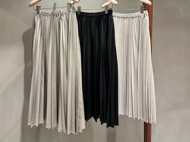 アートやカルチャーを取り入れながら、自分らしさを追求する「サロン アダム エ ロペ」。昨年も大人気だったスタンダードなデザインのスカートは、フェイクレザーのモードな雰囲気とツヤ感が魅力。適度なハリでボディラインを拾いにくいのも◎。