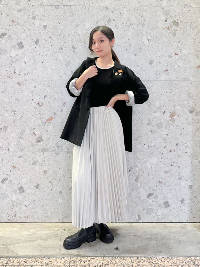 「オーバーサイズのジャケットにゆったりとしたスカートを合わせてスタイリッシュに決まるのは、骨感のあるナチュラルさんならでは。タンクトップで少し抜け感も出しつつ、大人のラフなスカートスタイルを楽しんでいただきたいです。」