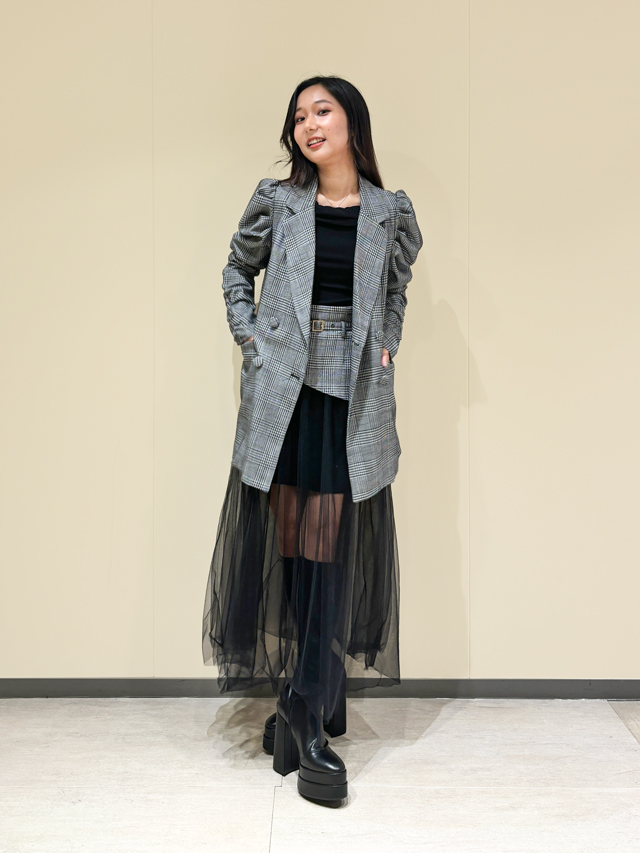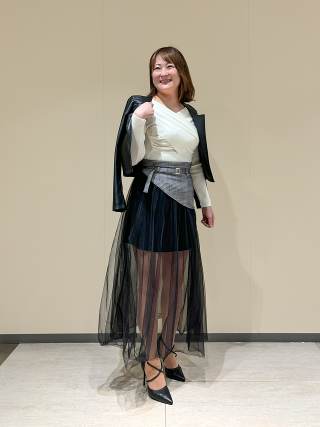 フレーム感のあるジャケットがチュールスカートと高バランスな、ナチュラルさんらしいセットアップ。ナチュラルさんの膝下の長さがアピールできる、チュールの透け感もうれしいです。