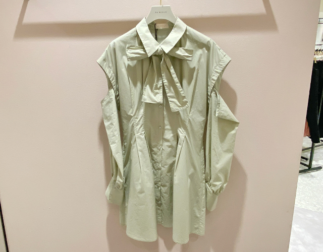 ショルダーがポイントのあざと可愛いシャツワンピース。ウエストはタック入りでシルエットが綺麗なところもおすすめポイント。パンツと合わせるとガラッと雰囲気が変わり、大人っぽくも着れるアイテムです。