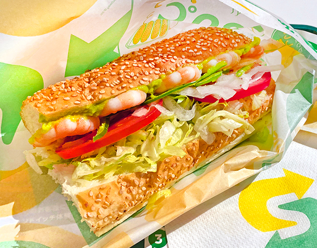 旨みを閉じ込めたサブウェイオリジナルのぷりぷり食感なえびとアボカドの最強コンビ。おすすめのドレッシングは野菜クリーミードレッシング◎