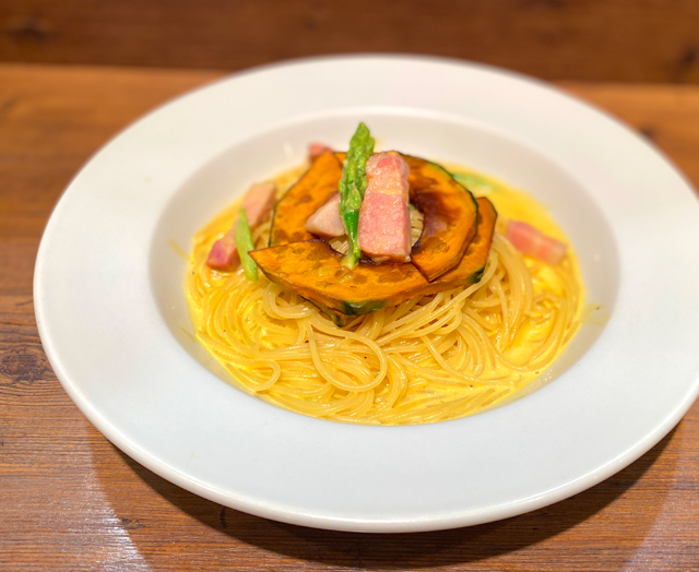 厚切りベーコンとアスパラのカボチャクリームソース 1,300円