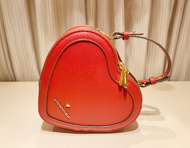 ハートモチーフが可愛いバッグ。フロント部分のゴールドのハートパーツがワンポイントに。デイリー使いからパーティー、旅行やテーマパークなどあらゆるシーンで活躍できるアイテムです。