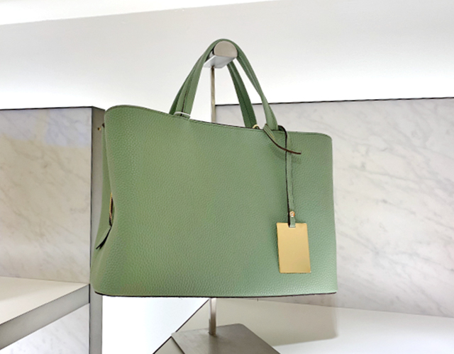 シンプルなデザインなのでお仕事でも使いやすいバッグです。4サイズが入る大きさなところも嬉しいポイント。持ち手に付いたプレートがワンポイントのアクセントに◎