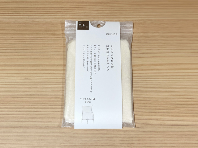 Lサイズは裾部分にジャガード生地を使用した長めの丈感。お尻までしっかりカバーできるから、冷えやすい下半身を重点的に温めたい方にぴったりです。