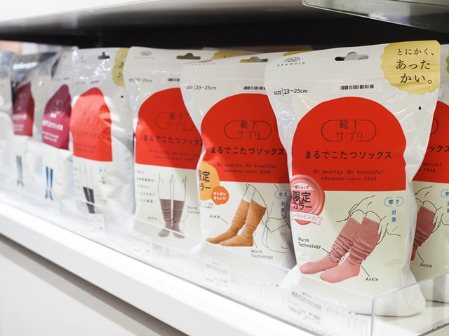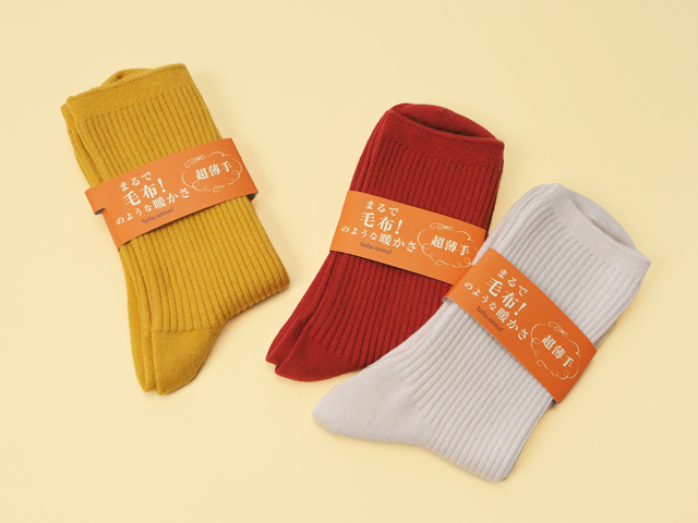 「まるでこたつソックス」は冬の大人気商品。独自に開発した特殊保温・発熱素材を採用し、“まるでこたつ”のような心地よい温もりで包みこんでくれます。寒い季節に大活躍のアイテムなので、冬のちょっとしたギフトにもおすすめです。