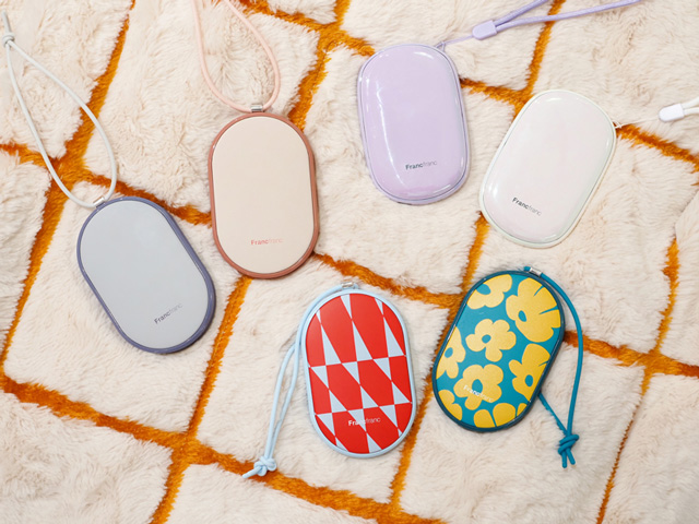 シェアして使える充電式カイロは2つに分けて使えるので、左右のポケットに入れて両手を温めたり、友達や家族と分け合ったりと使い方自在。電源を入れて約5秒で温もりを感じ始めます。繰り返し充電できてお財布にも優しいアイテム。
