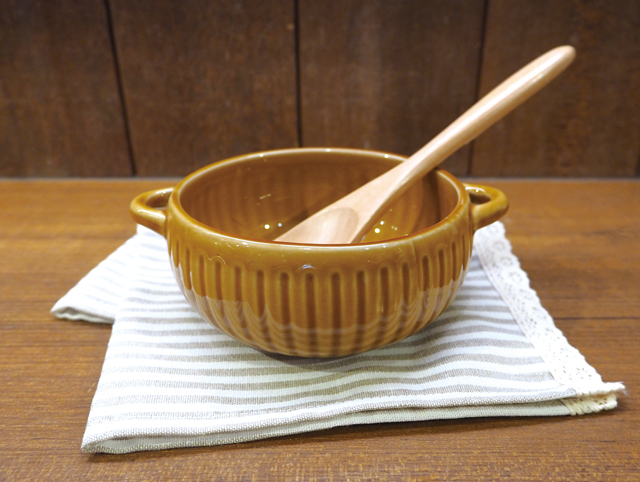 こっくりとしたキャメルカラーのスープボウルは、秋冬のテーブルに温もりを演出。グラタンやホットスープをより美味しそうに引き立ててくれます。スプーンやクロスを合わせればおしゃれなテーブルコーディネートが完成!