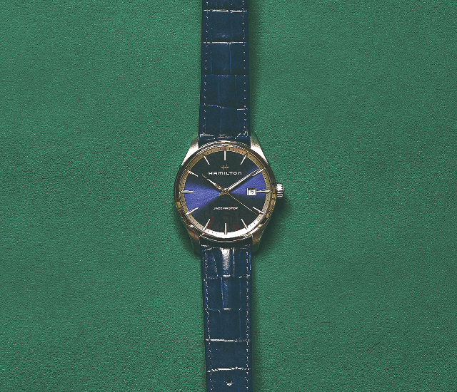 控えめでありながらも大胆なジャズマスター ジェント。クラシックウォッチをベースにジャズ音楽のような革新性を取り入れ、コンテンポラリーな雰囲気を兼ね備えた人気シリーズです。シンプルで洗練されたデザインは堂々とした自信を感じさせます。文字盤の艷やかなブルーの光沢や、クールで都会的なレザーストラップで腕もとに気品を。特別な男性へのプレゼントにも。
