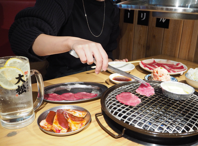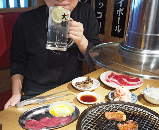 そして、おいしいお肉にはお酒……!ということで、「大松レモンサワー」を。これはどうしてもお酒が進んじゃいますね!「大松レモンサワー」は、1杯なんと209円という破格なので、お財布にもとってもやさしいです。焼肉と一緒にぜひ♪