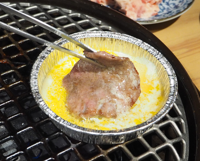 お肉と一緒にバターニンニクも網に乗せて、ニンニクのいい香りが漂ってきたら焼きたてのタンをつけ込んでいただきまーす。おっ!これはたしかに新たなタンの楽しみ方だ!レモンでさっぱり食べるのも好きだけど、ガツンと食べ応えがアップしたタンもまたおいしくてやみつきになりそう♪