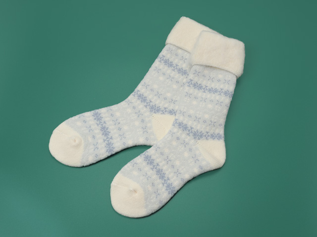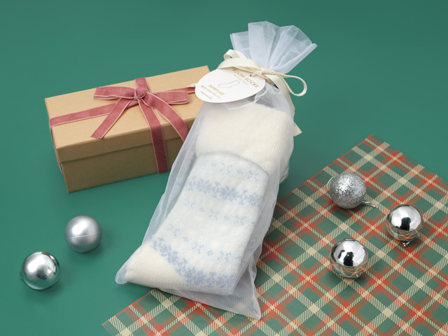 繊細なスノーフレークの編み柄がキュートなルームソックス。裏起毛でつま先までふんわり包み込む肌触りで、冬のおうち時間をあたたかくしてくれます。全体に柄を入れる難しい技法を用いて、華やかなデザインを実現したこだわりのアイテムです。