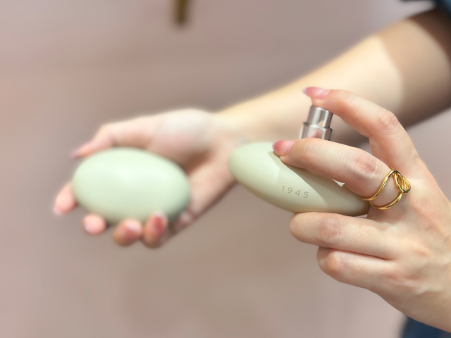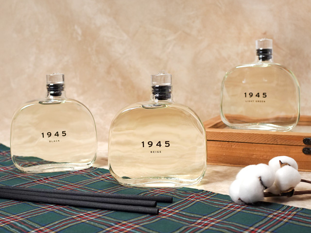「1945」シリーズの香りがお部屋で楽しめるルームディフューザーに!平たい石のようなシルエットと無着色のボトルが静かな存在感を放ちます。オードトワレでも人気のブラック、ベージュ、ライトグリーンの3種の香りを展開中です。